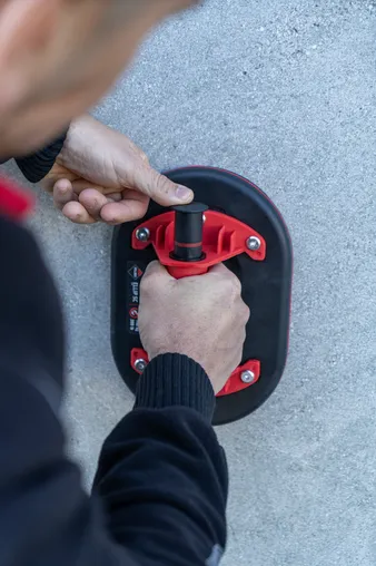La salute del posatore è la nostra priorità. Utilizzare una ventosa specifica riduce drasticamente il rischio di caduta del materiale e gli infortuni sul lavoro. La ELLIP SC assicura una presa ferma che ti permette di concentrarti solo sulla precisione della posa.
